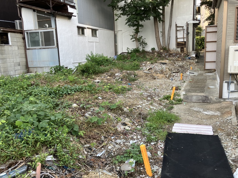 放置されたのは他にも理由があるようですが、前面道路からの接道が幅が狭く90センチくらいしかありません。