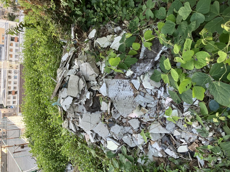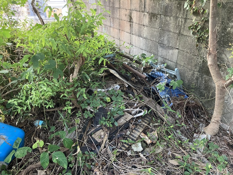 敷地内には放置された瓦や剥がれた壁材、波板、基礎の一部やコンクリートガラなどが大量にありました。