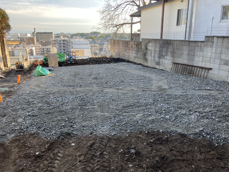 3日目はオペレーターさんの提案もあり、敷地内に砂利を敷き込んで転圧をした方が綺麗になるとのことからそちらの方向で作業を進めました。